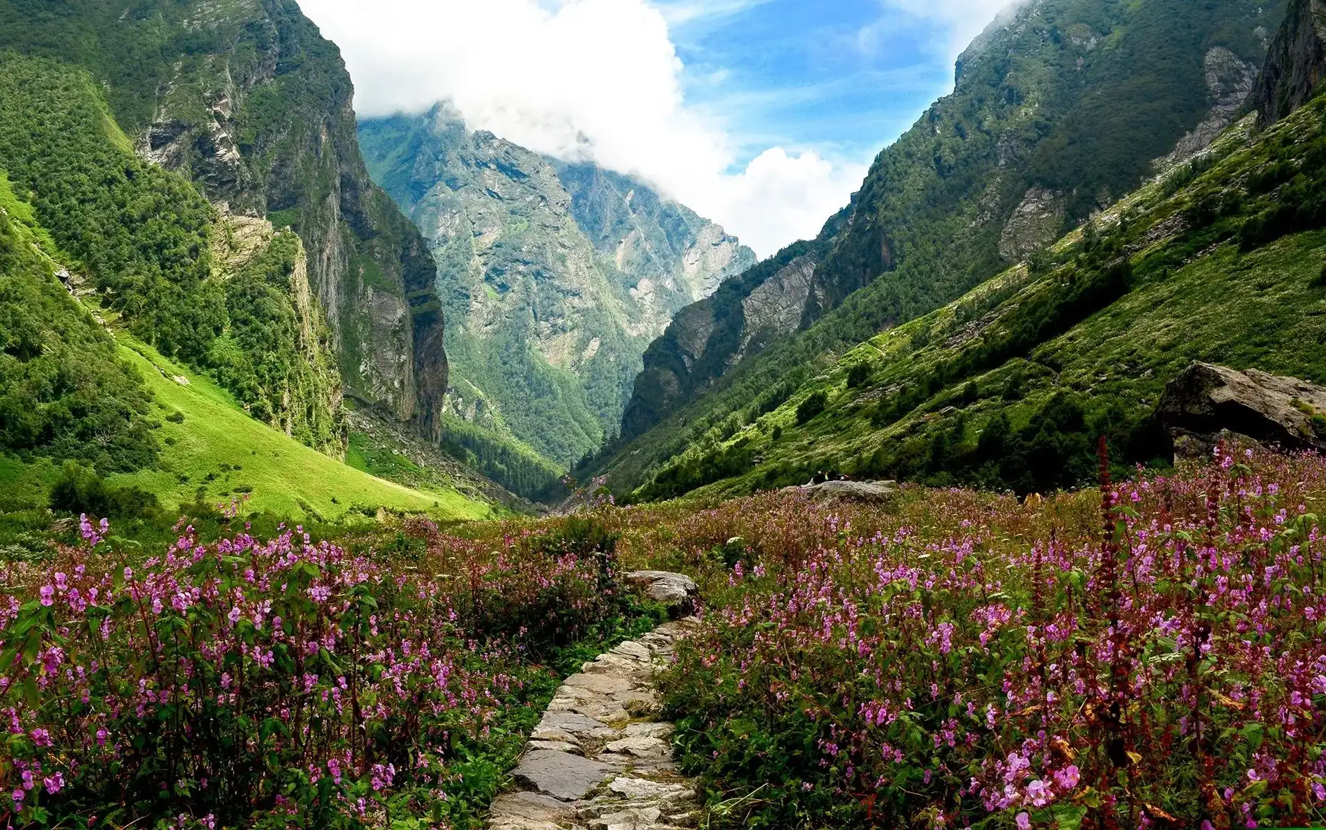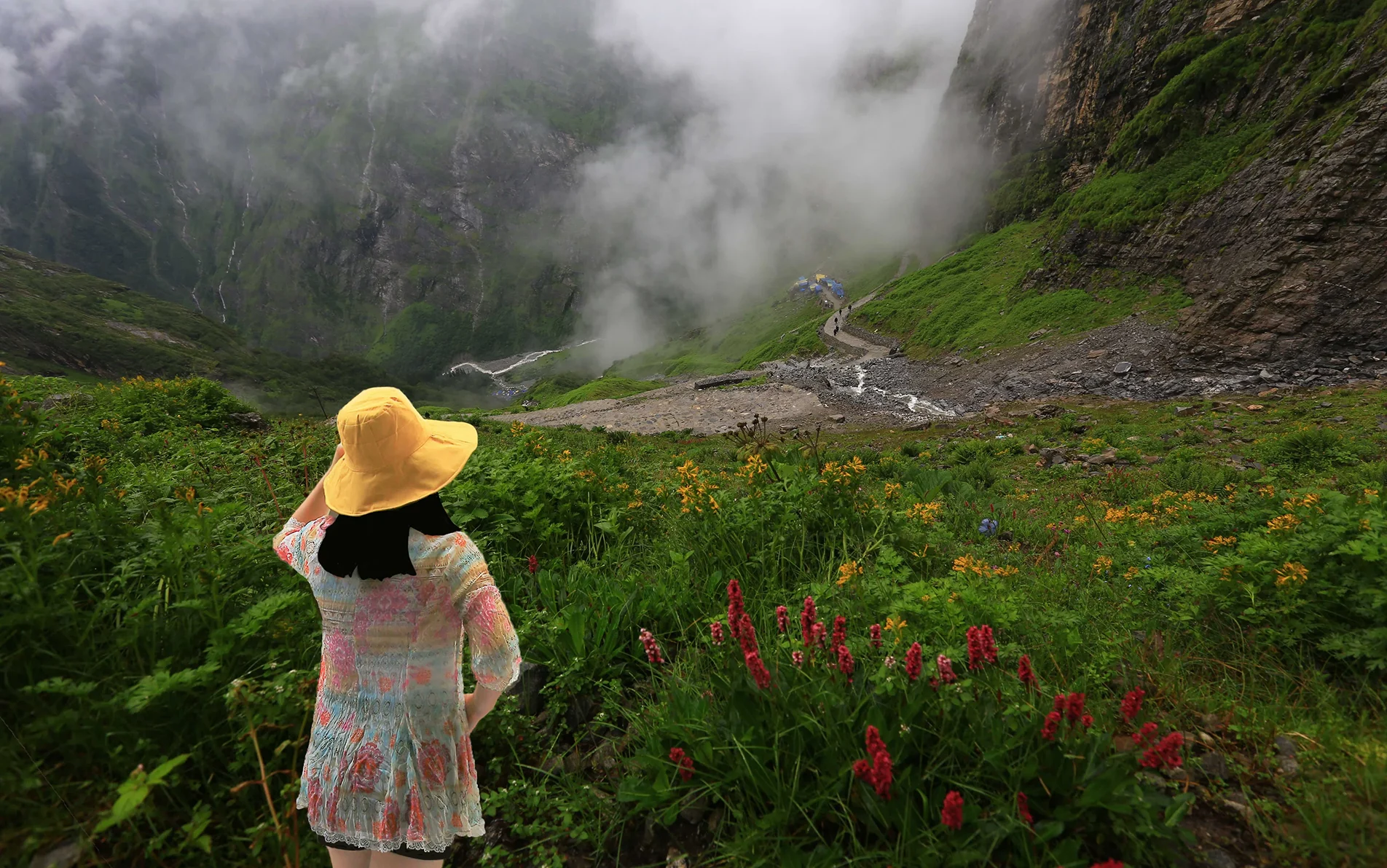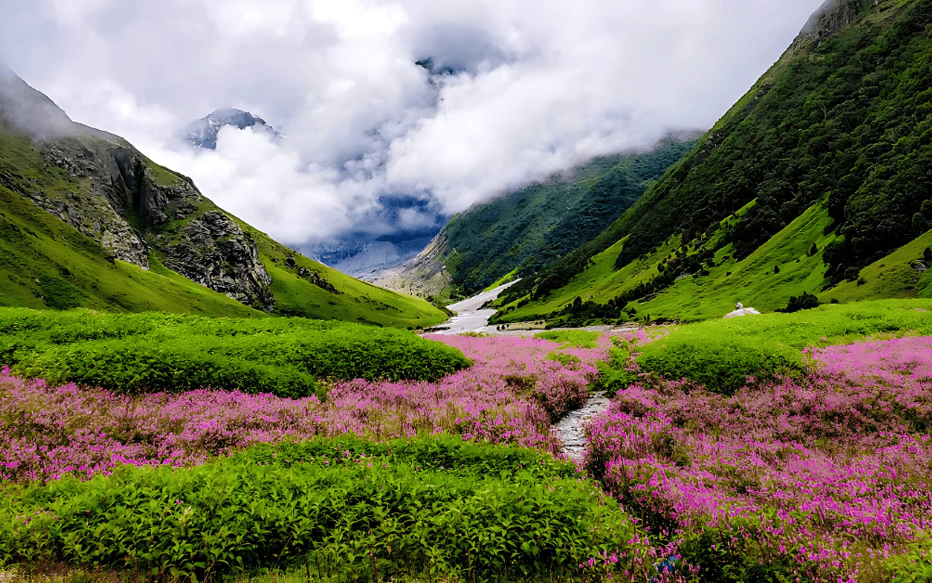 Walk through a valley bursting with rare Himalayan flowers in peak bloom.